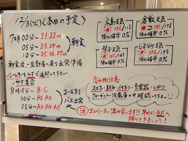 本日の朝の予定です いい天気です