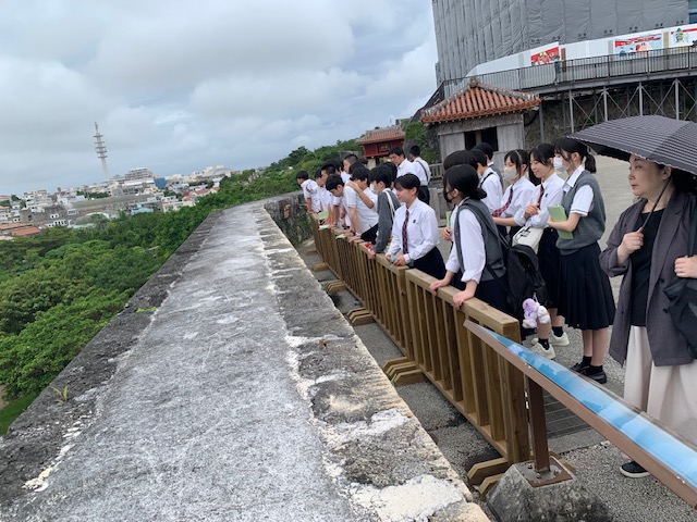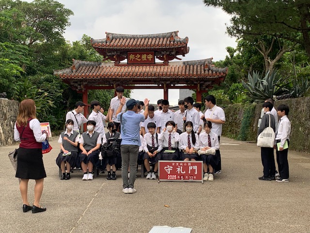 天気も何とか持ち、首里城までやってきました。クラスでそれぞれ守礼の門で写真を撮り、公園内を歩きました。