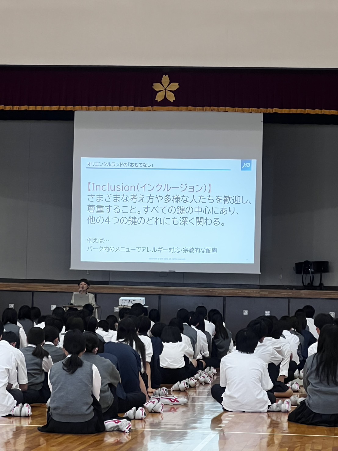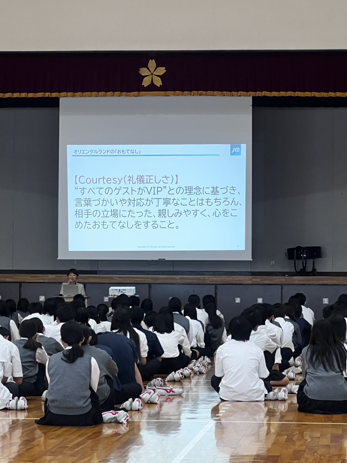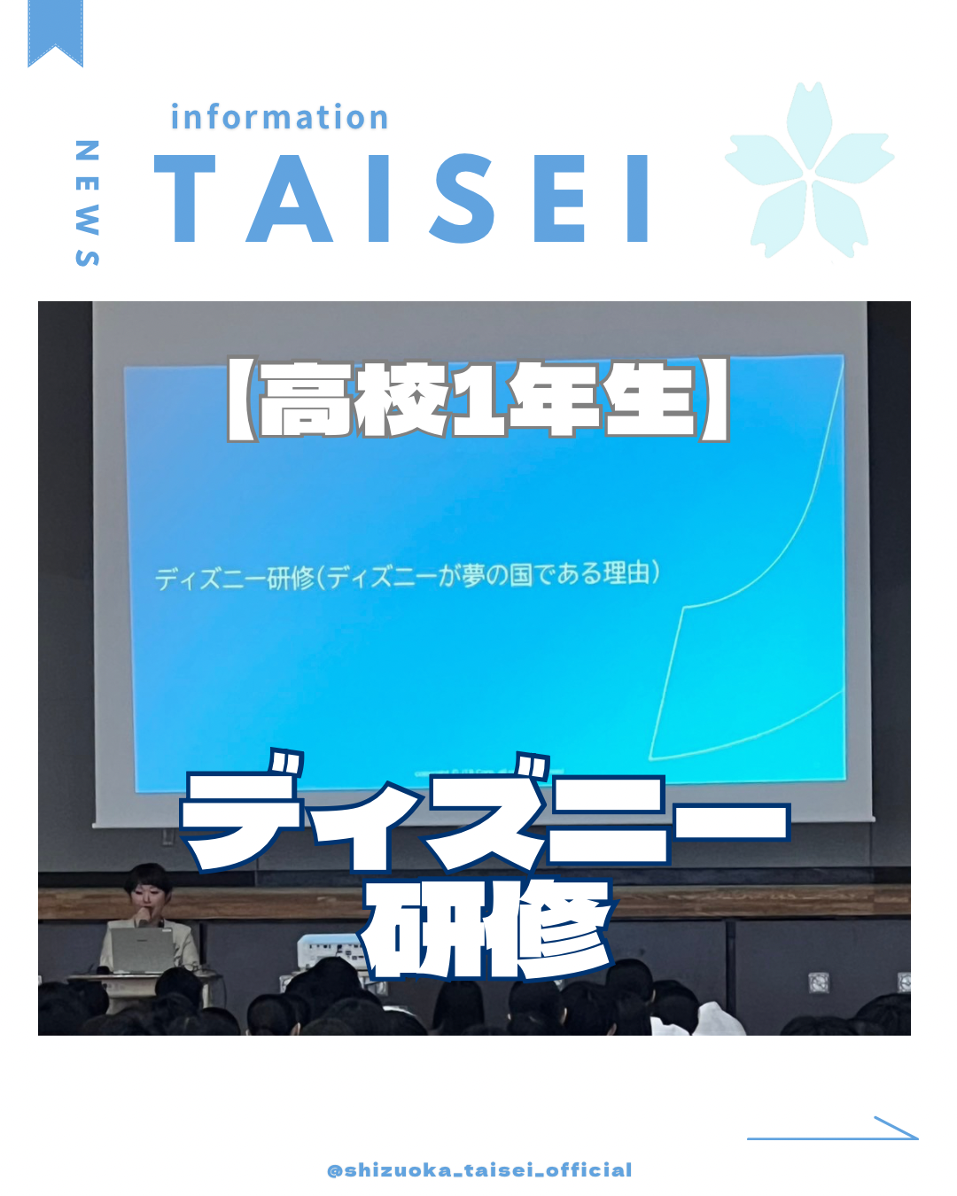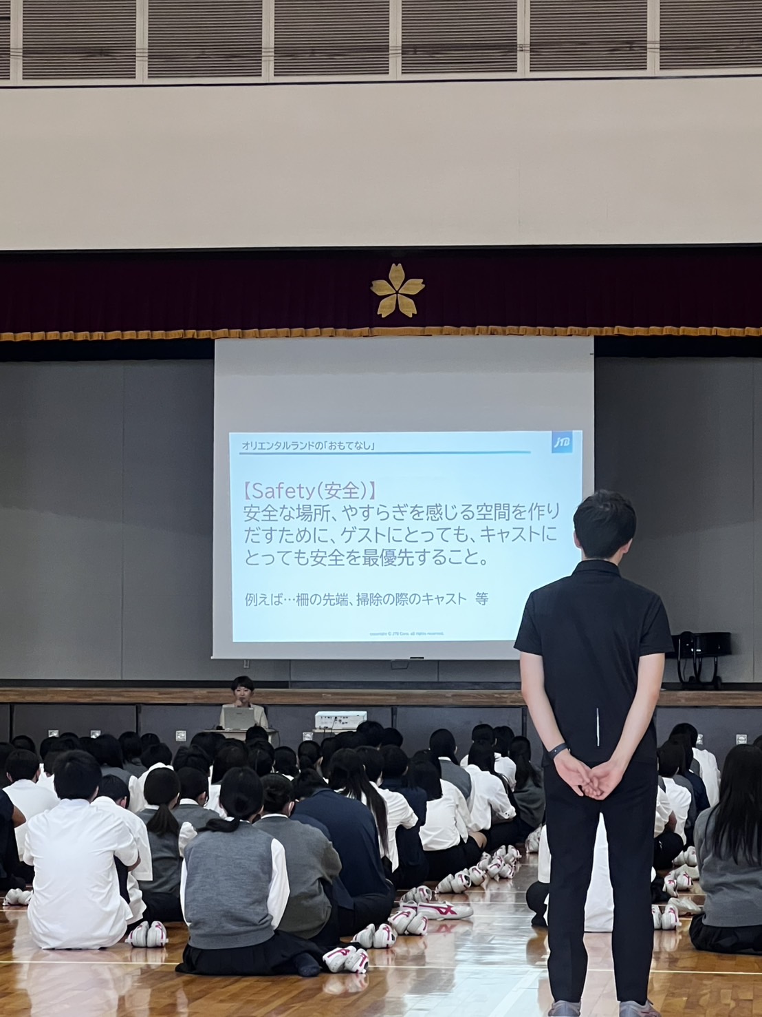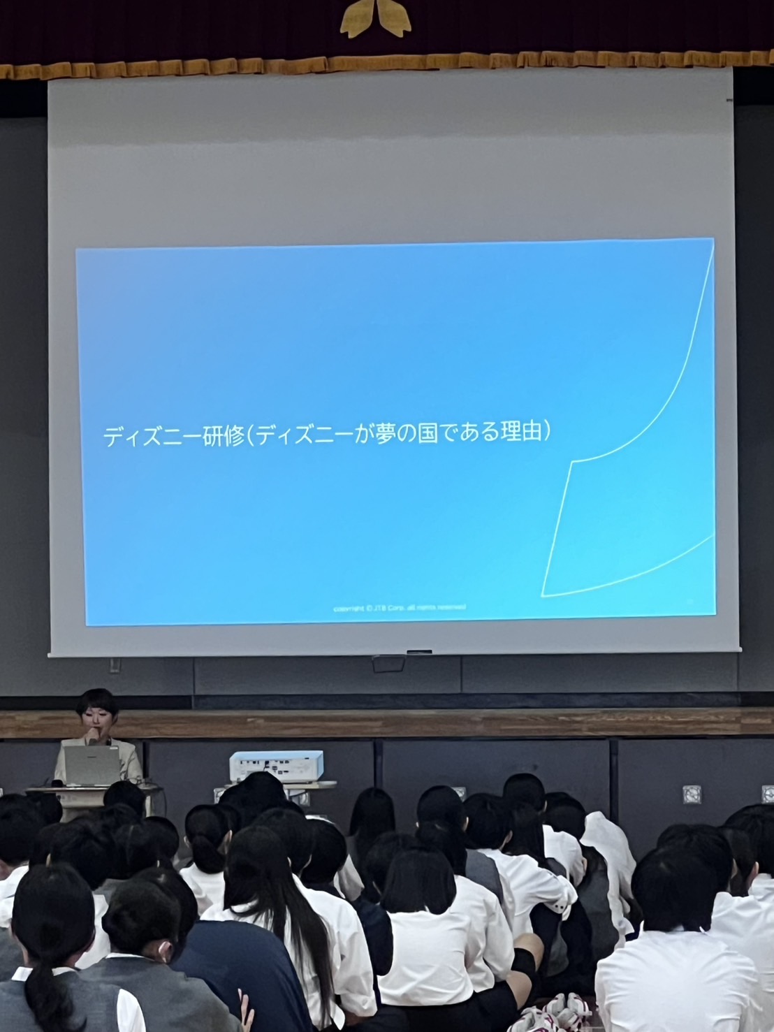 本校では高校一年でDisney研修を行っています。 ディズニーランドやディズニーシーに出向いて、実際キャストの方から受けたおもてなしやホスピタリティを感じ学びに活かします。 自分がただ楽しむだけでなく、裏側のキャストの方々の想いや行動を見て、知ることも目的の一つです。