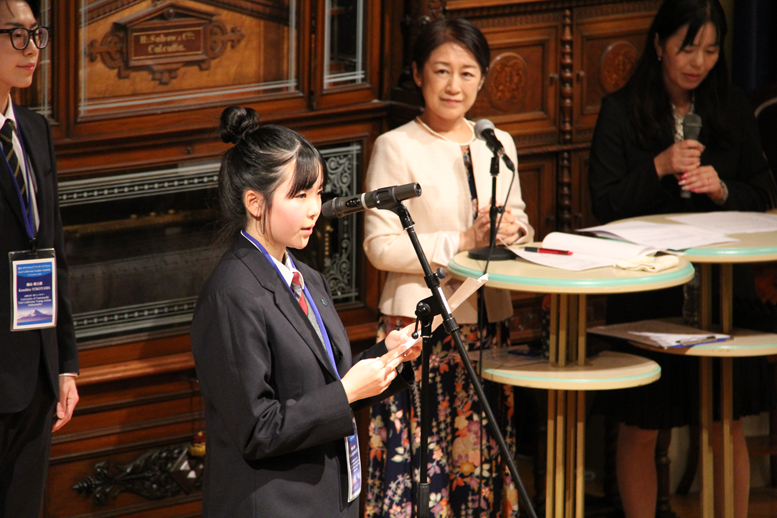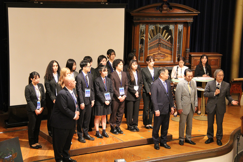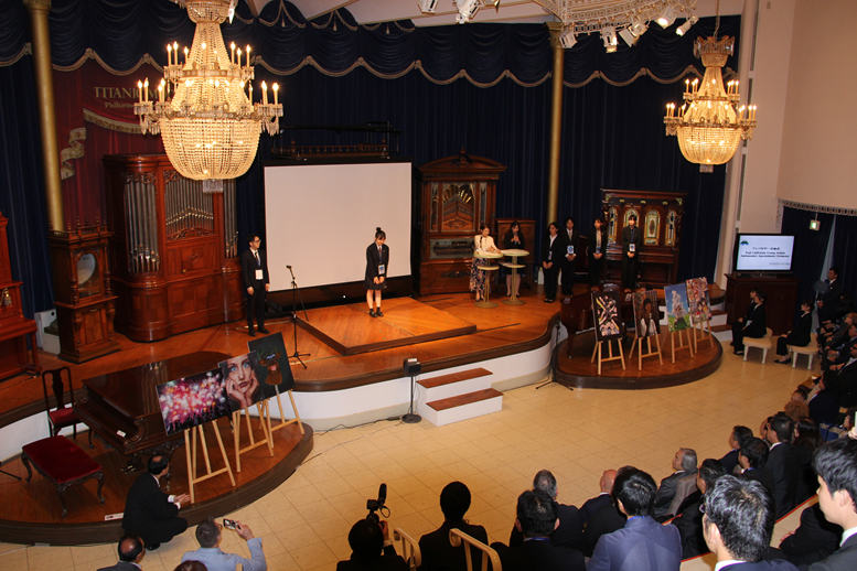任命式では高校生アンバサダーの代表(1名)として壇上に上がり、多くの方が見守る中「アンバサダーとして任命され非常に嬉しく思います。グローバル社会においてはアートが共通言語であるという理念にも共感しております。実際にカリフォルニアへ行きその場の空気を感じ、現地のアートにも触れ、そしてアートを通して交流を行い、日本の良さなどを多くの人に伝えてきたいと思います!」と力強くスピーチをし、多くの拍手をいただくことができ、本人も「壇上に上がり緊張したが落ち着いて話をすることができた。また参加者の方々に顔を覚えてもらい話しかけてもらうこともでき、本当に良い経験をさせていただき感謝している」との感想も聞くことができました。