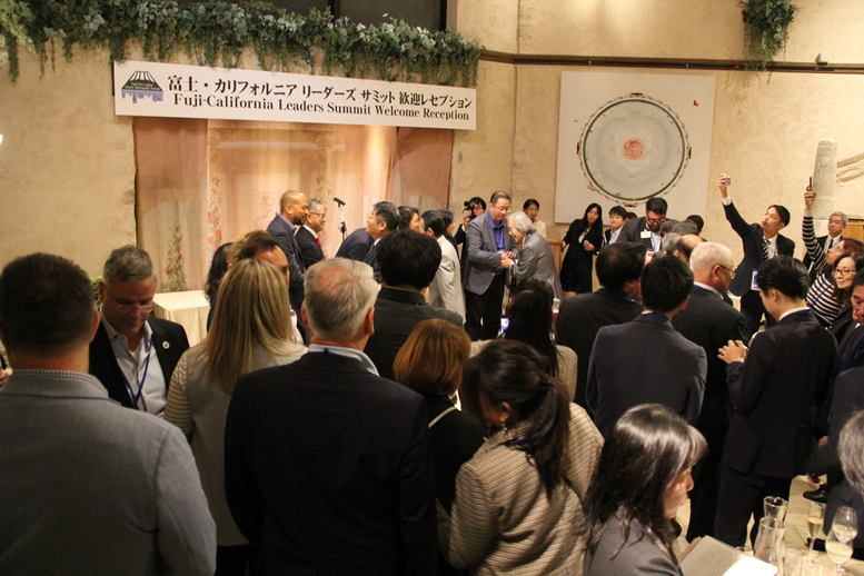 任命式終了後にNHKをはじめとする各種報道機関からも取材を受け、その後「カリフォルニア リーダーズサミット歓迎レセプション」が行われ、カリフォルニア州関係者の方々と英語で会話を楽しむこともでき、また鈴木康友静岡県知事様との会話も楽しみ、より一層渡航への期待と希望を膨らめることができていたように見え安心しました。