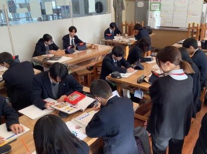 ※本校が実習先に選ばれた理由としては、美術部では20年以上近隣商店街との地域交流を行っており、また近隣の介護施設へも15年以上ボランティア活動を実施し、さらにここ2年でその関係を部活動だけでなく授業へも広げており、具体的な活動としては、美術授業「美術ゼミ」(選択授業)で県内外を見ても他校にはない取り組みである近隣商店街へ「ミニ看板」「マスコットキャラクター」などを制作し制作者自らが店舗へ行きプレゼントし、そして部活動では近隣商店街へ「風鈴(加飾)」「松ぼっくりツリー」などを制作し商店街や施設へ行き直接手渡しでプレゼントをしている点や、さらに介護施設へも活動の場を広げ、利用者や職員の方々に四季を感じてもらえるよう「春夏秋冬の絵」を各季節で描き、施設で架け替えを行いながら会話を楽しむなどの「地域貢献活動」「地域ボランティア活動」にも取り組んでおり、その活動の中で「相手をおもいやる気持ち」「人やものを大切にするこころ」の育成にも力を入れているという点も挙げられました。