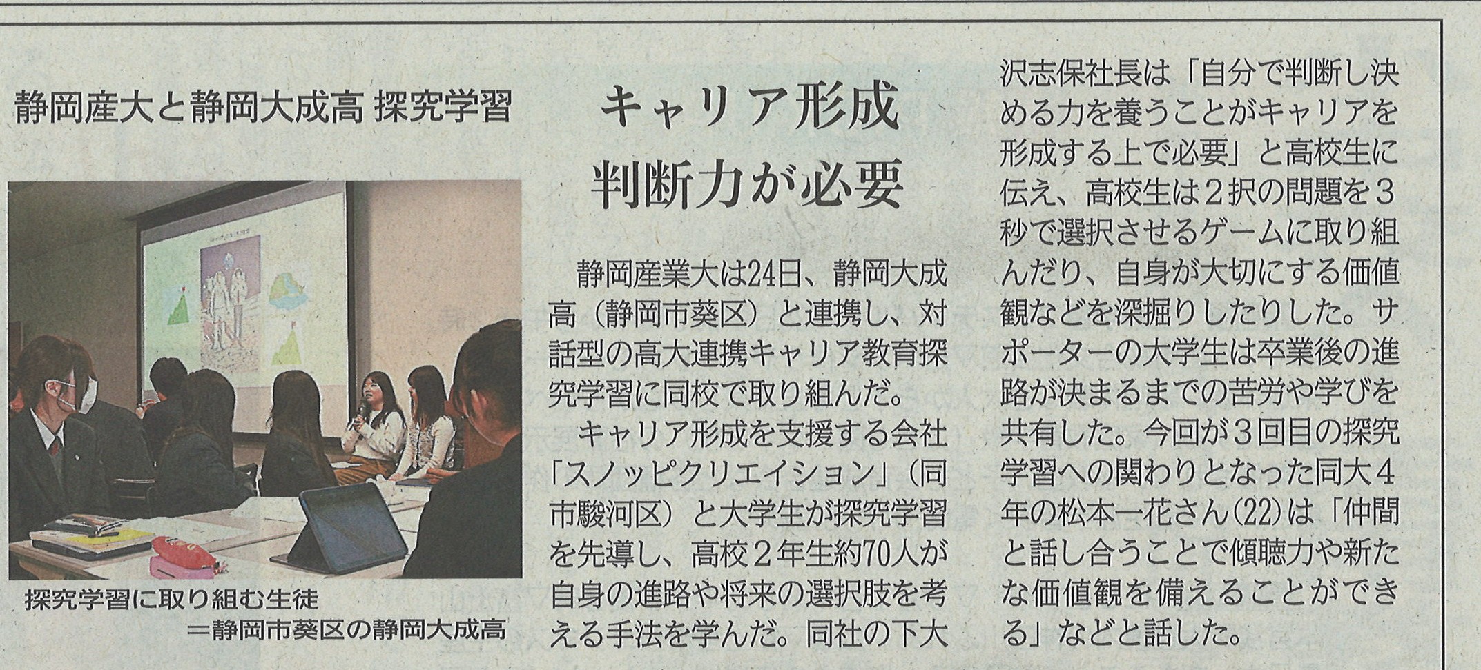 「キャリア共育メンターシッププログラム(静岡産業大学連携)」の様子が、