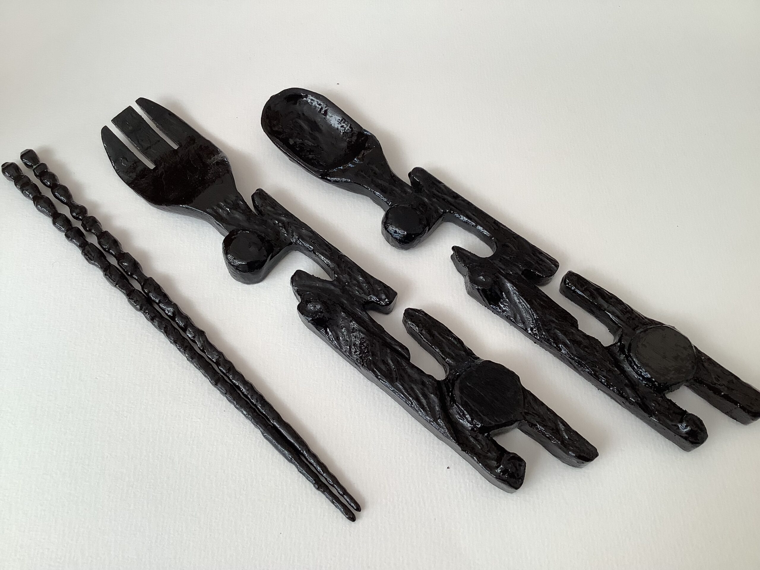 この授業は本校で20年以上続いており、本物の漆を使い「箸」「スプーン」「フォーク」などを完成させ、自分で作ったものでお弁当を食べ、使いやすさを実感しています。また、授業担当者が美術教諭として長年培った知識や技術と、全国でも数少ない漆芸家として30年ほど伝統的な知識や技術を学び身につけたものを含め、受講した生徒たちに「本物の漆工芸」を体験させています。