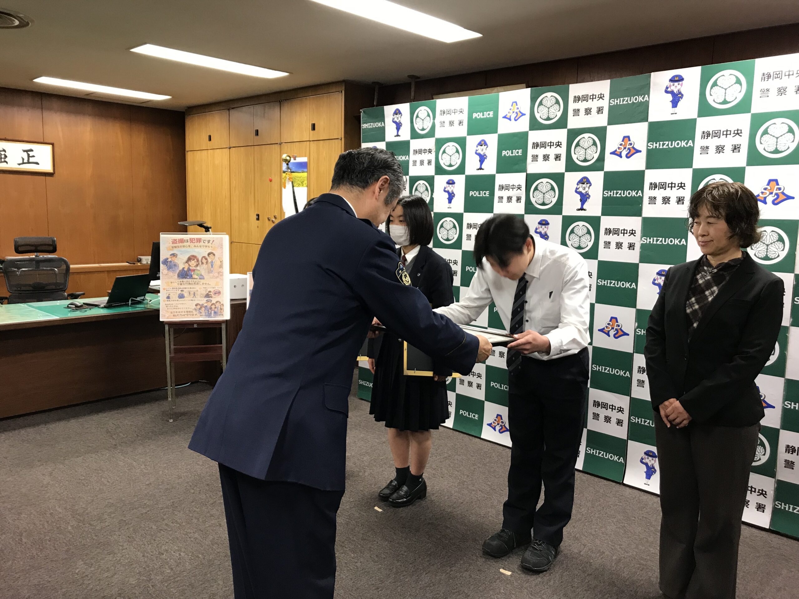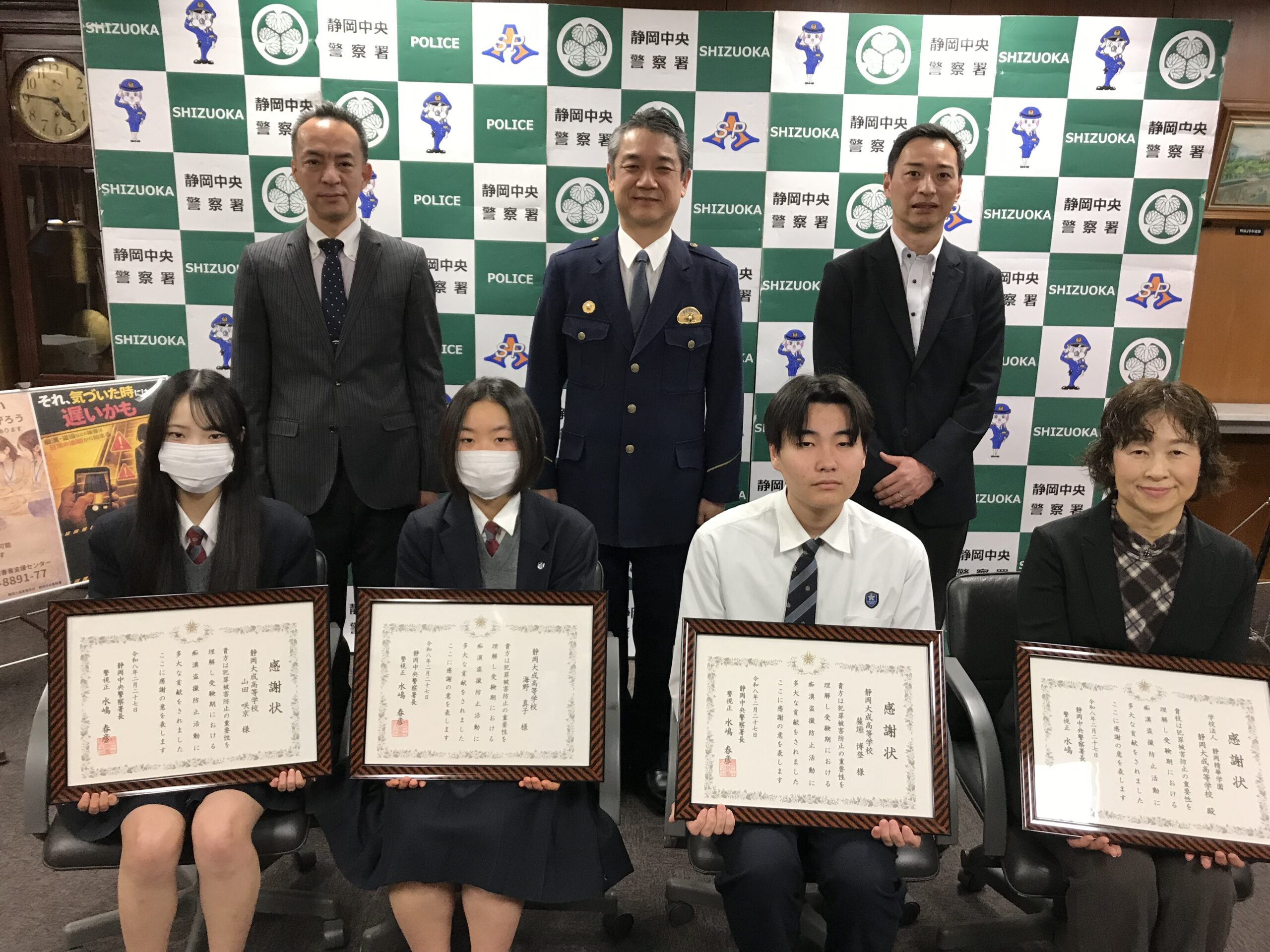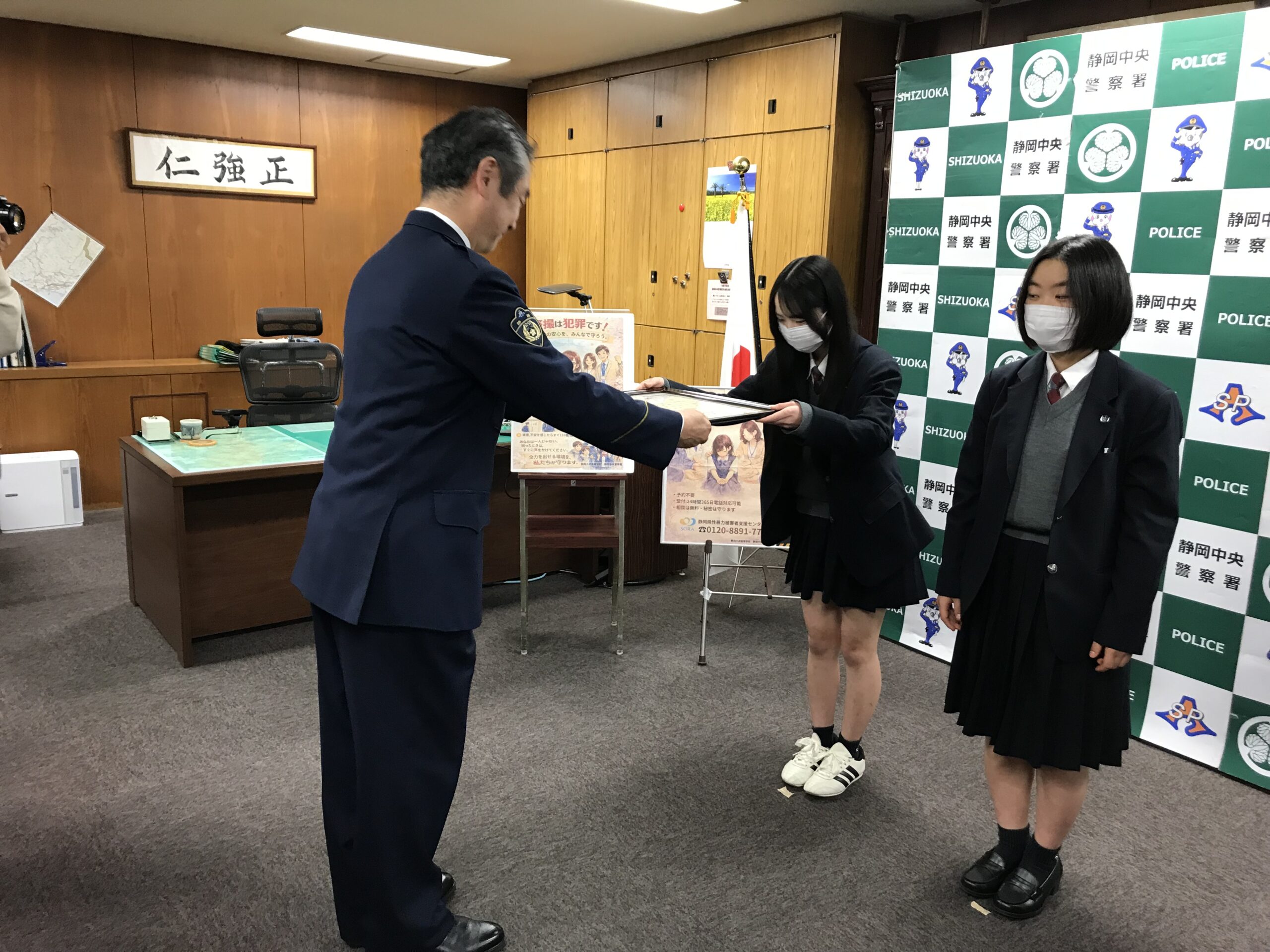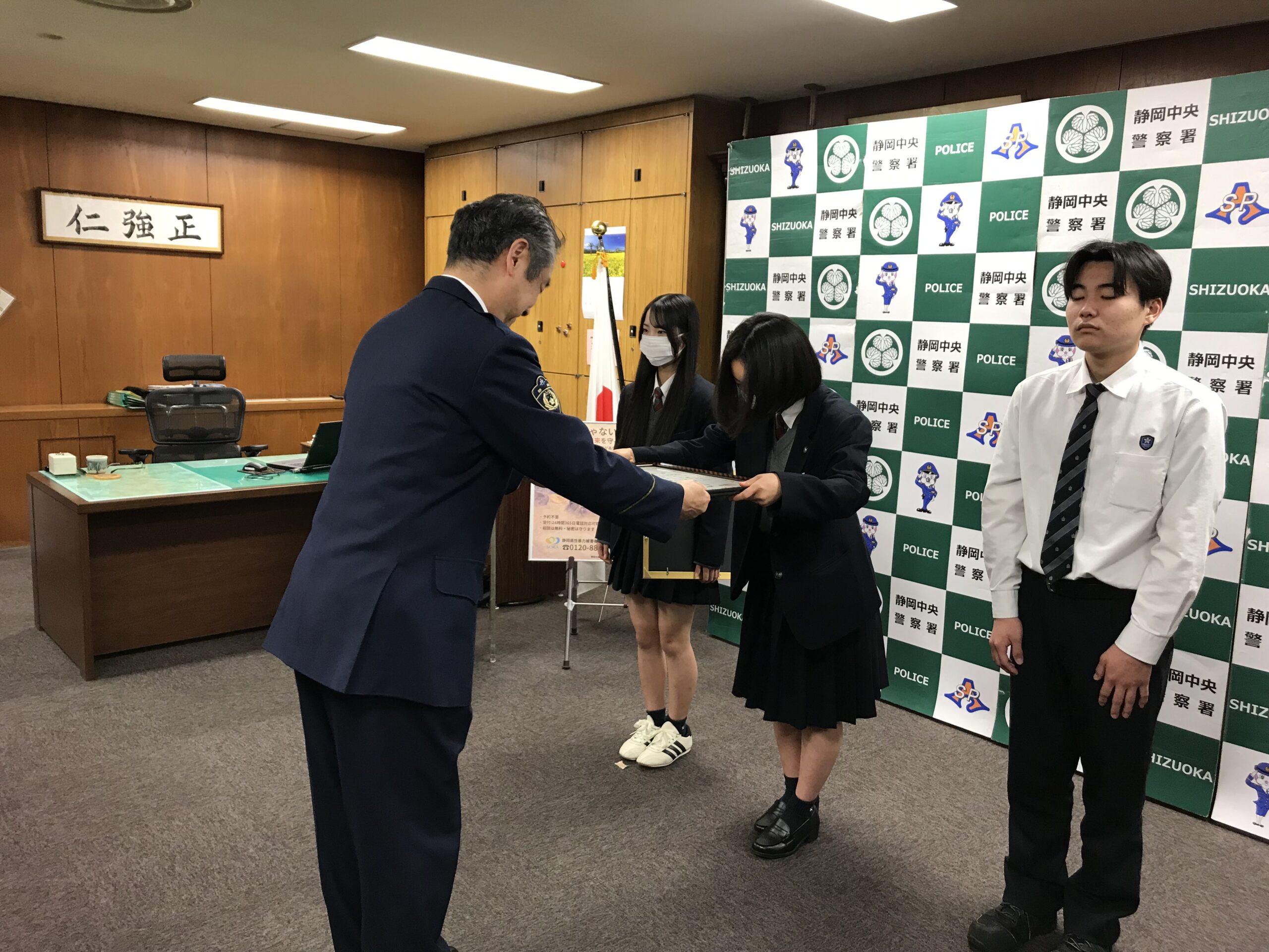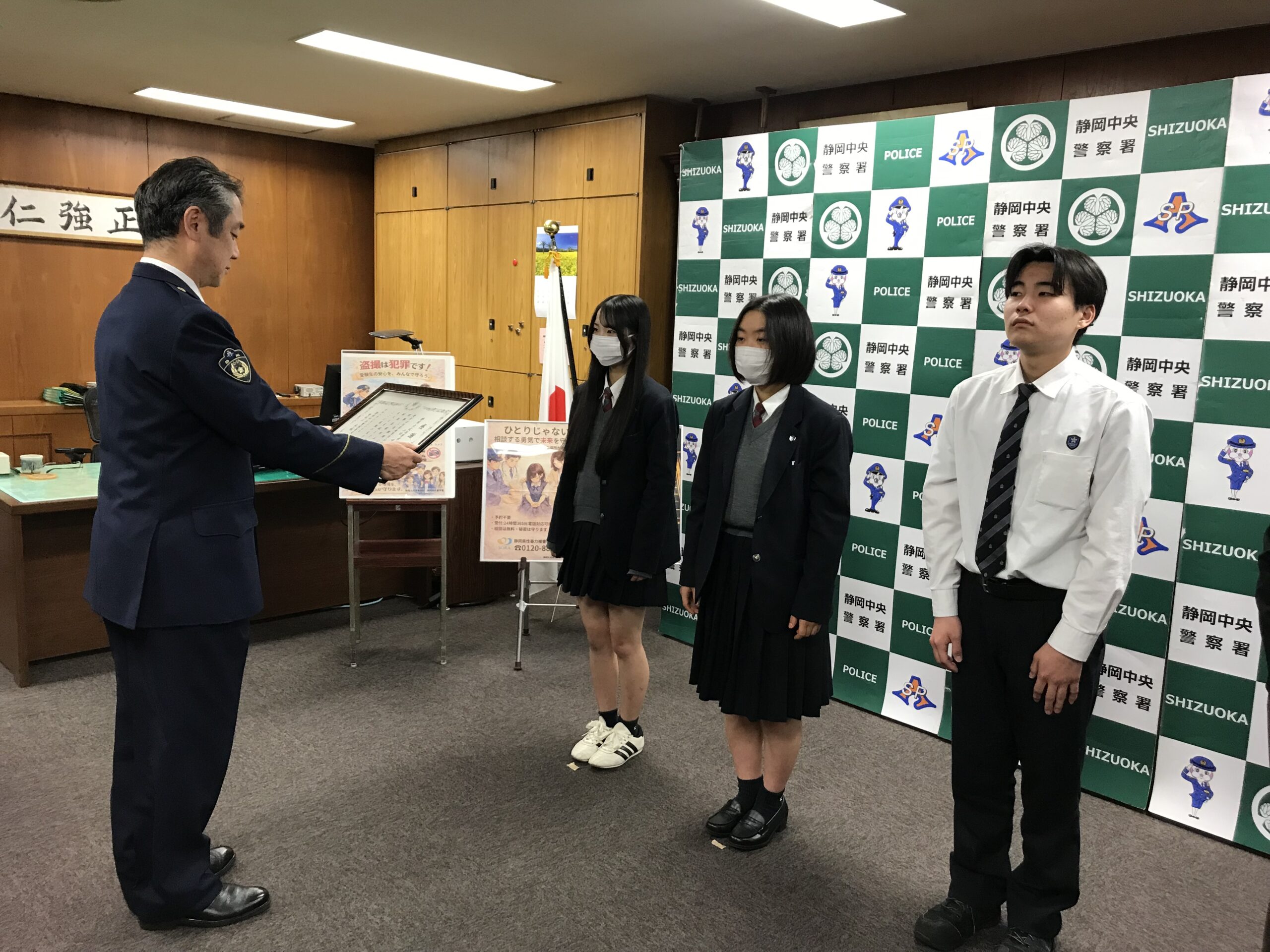 21,22HRの探究活動で静岡中央警察署から感謝状をいただきました。