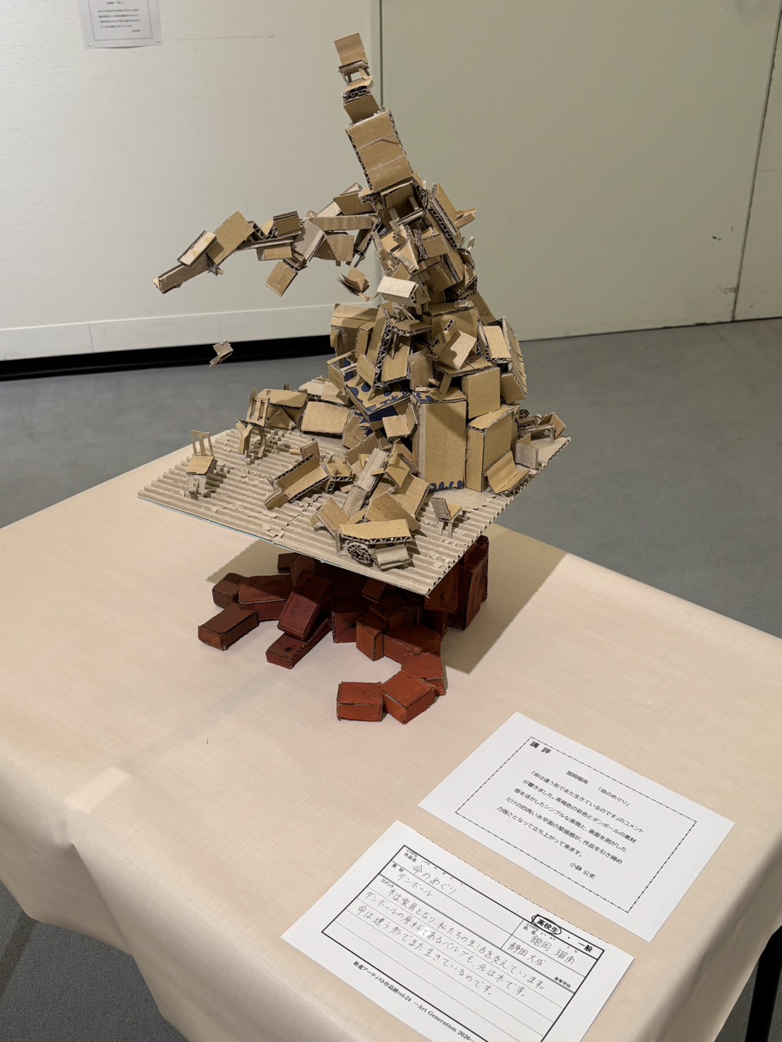 「AG賞」を受賞した福岡さんは「高校生最後のこの大会で受賞して本当に嬉しいです。大学に行っても見る人に楽しさを与えるような作品を作って行き、次年度もこの展覧会に出品したいと思います」と話してくれました。